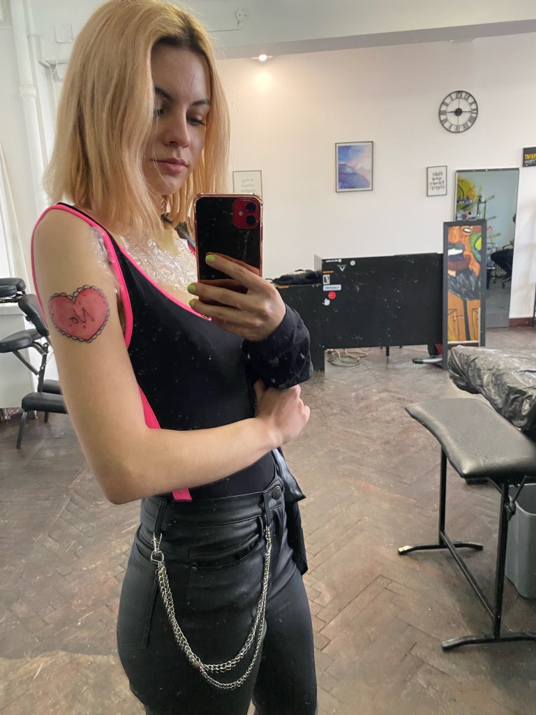 Aproape în aceeași zi precum anul precedent m-am programat pentru a-mi face două tatuaje în aceeași sesiune. De această dată am mers în Brașov, unde m-am mutat în vara anului 2020, la recomandarea unei alte cunoștințe. Am ales să îmi tatuez o inimă „în stil Tumblr”, cu o broderie pe margini, deoarece o visasem cu ceva ani în urmă. De asemenea, Tumblr a reprezentat un mecanism de coping extraordinar pentru mine în adolescență, așa că am vrut să-l onorez astfel.