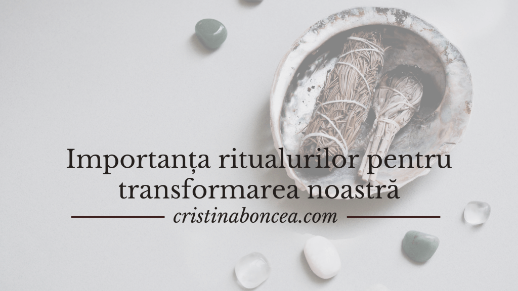 Ne putem inventa propriile ritualuri de transformare, prin care inaugurăm un nou pas în evoluția noastră. După ce mi-am petrecut o lungă perioadă lucrându-mi partea cognitivă, mi-am dat seama că munca somatică și spirituală este următorul pas firesc în devenirea mea, așa că astfel de practici mi-au devenit indispensabile.