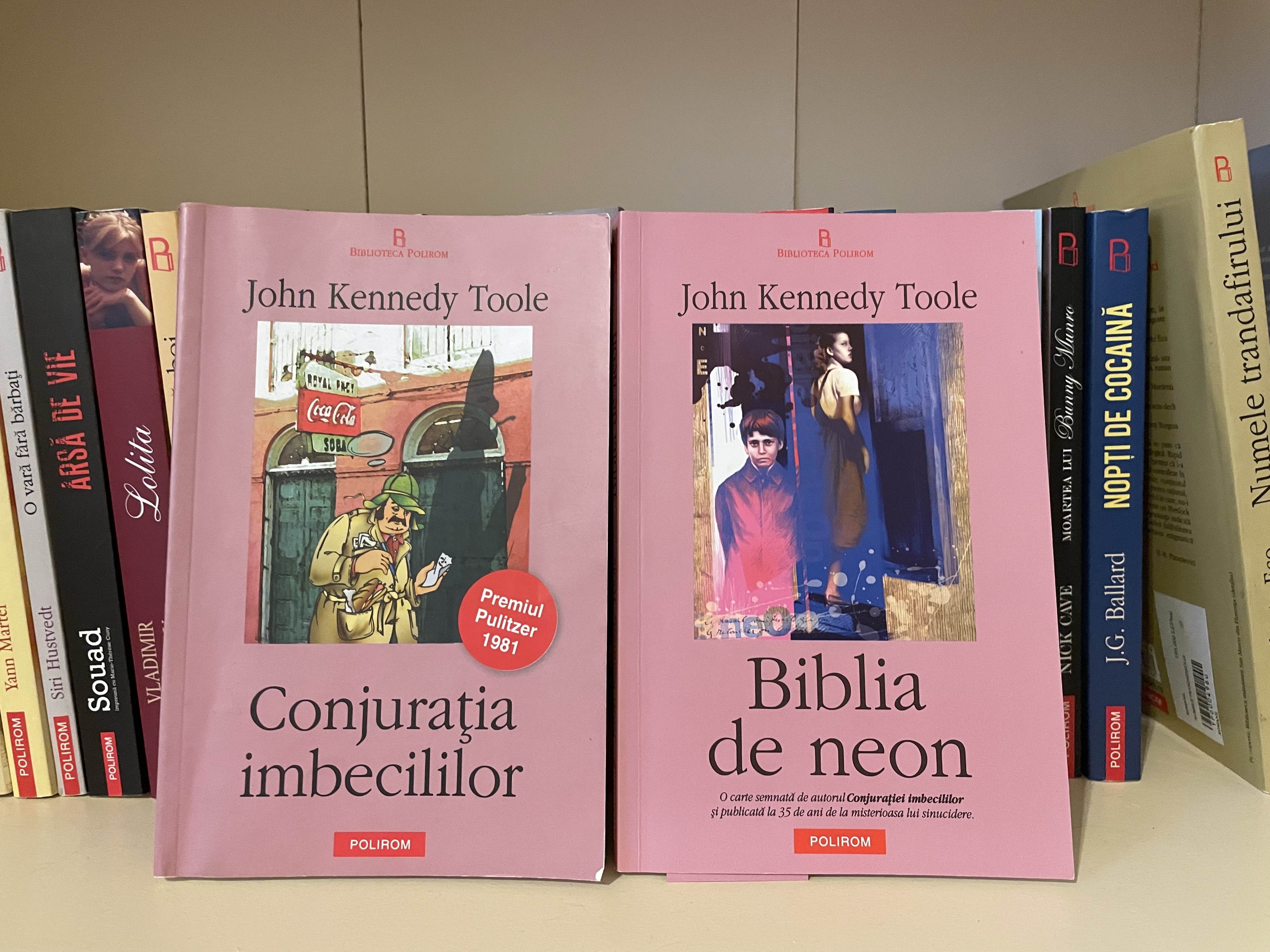 Biblia de neon se află încă printre cărțile mele preferate, iar Conjurația imbecililor, singurul alt roman scris de J.K. Toole înainte de prematura sa moarte este o achiziție ceva mai recentă la a cărei lecturare voi ajunge cât de curând. Mă bucur că editorii au ales ca ambele coperți să aibă aceeași nuanță de roz.