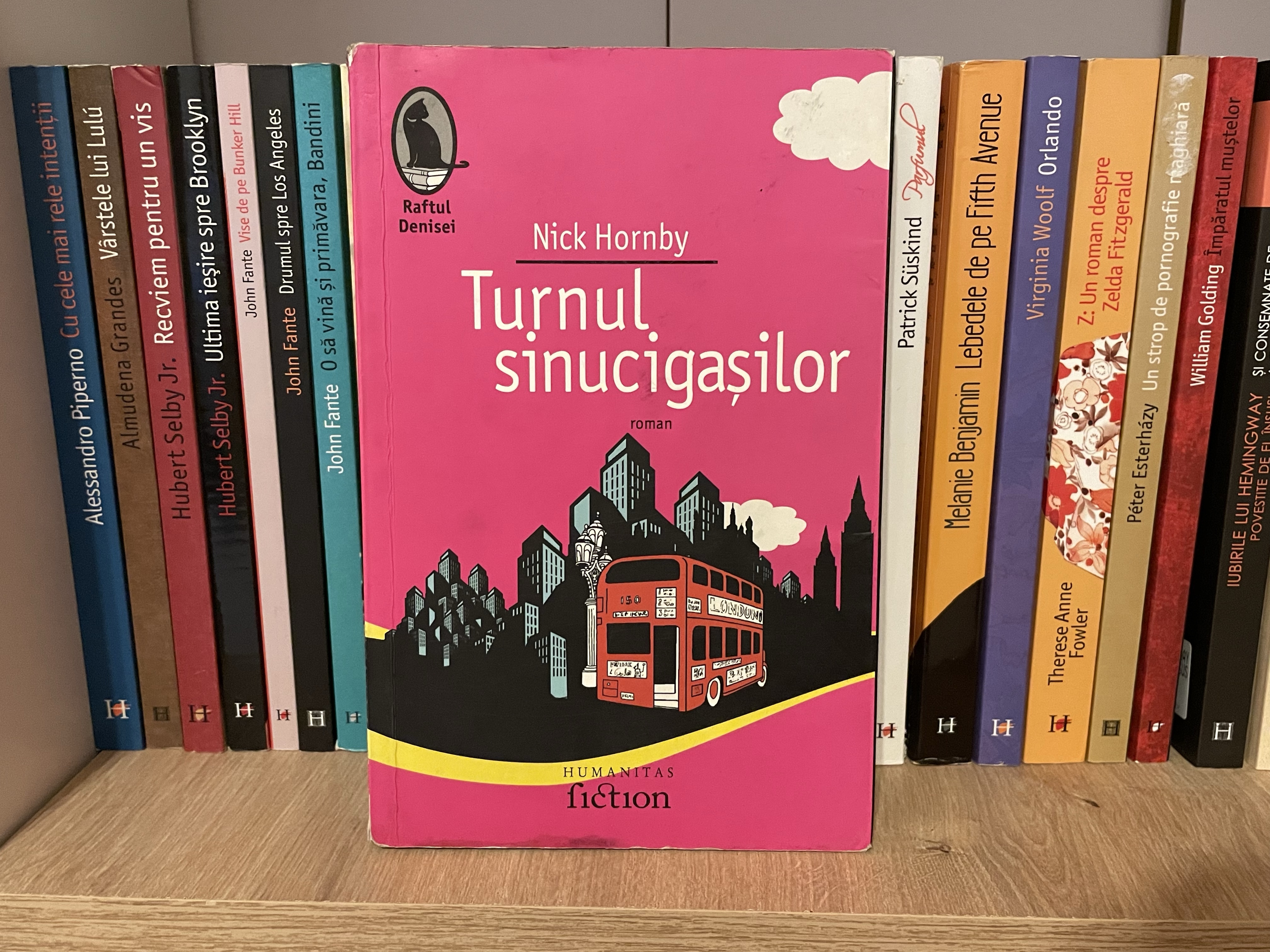 Mi-a plăcut atât de mult această carte încât am urmărit filmul și am achiziționat și versiunea în engleză. Ediția mea este mai veche, iar în prezent cartea a fost reeditată sub un alt titlu, însă eu prefer această mare de roz atât de izbitor. Recomand cu multă căldură Turnul sinucigașilor!