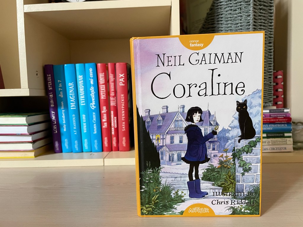 Coraline este o carte de 164 de pagini, în acest frumos format de la editura Arthur, în care trăim cu sufletul la gură aventura prin care tânăra noastră protagonistă trece cu puțin timp înainte de începerea unui nou an școlar. Precum multe alte cărți scrise pentru copii, volumul de față debordează de simbolism și ne propune o poveste „mai altfel”, înțesată de angoasele principale ale tinerilor cititori: plictiseala și pierderea figurilor parentale.