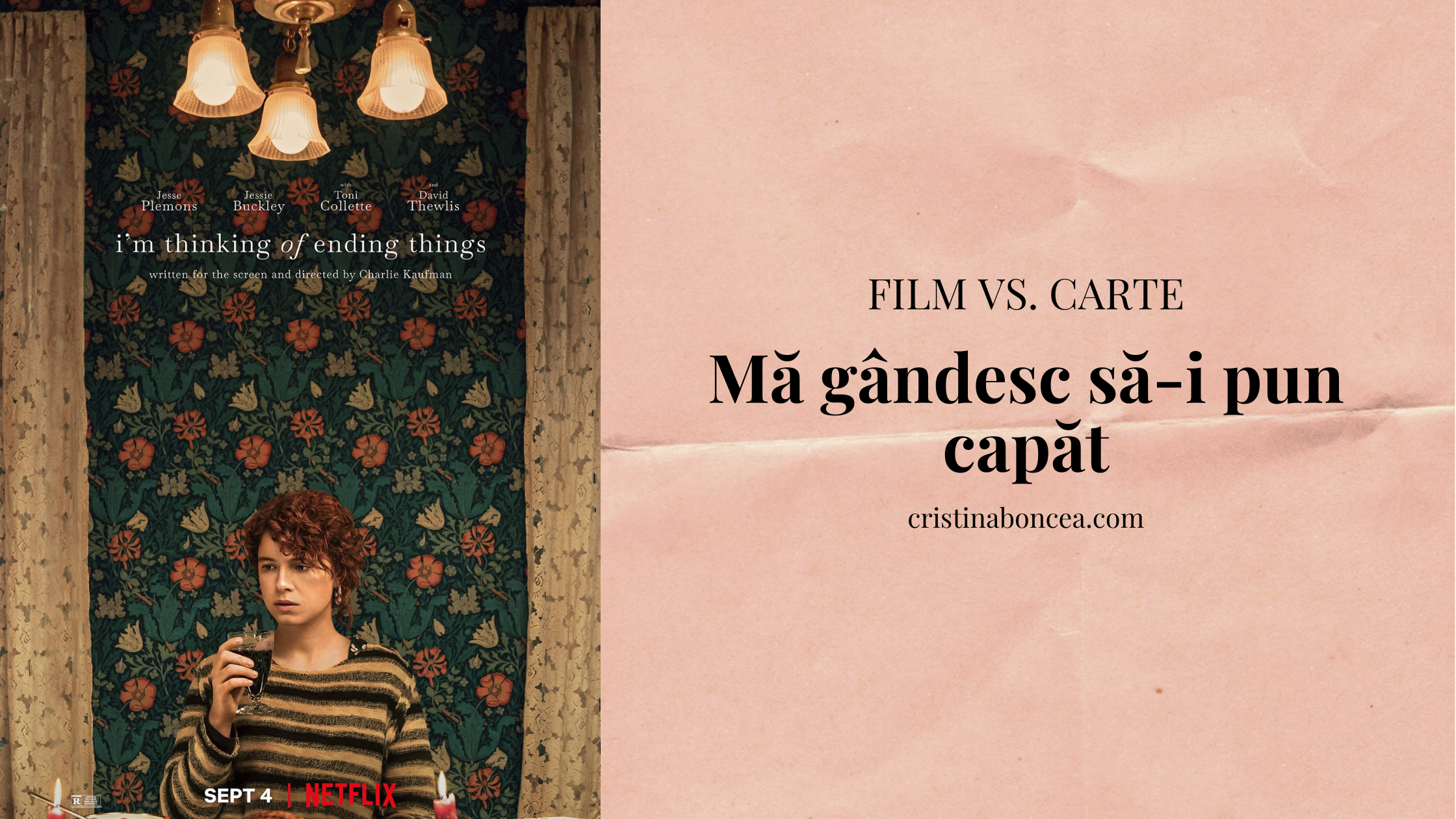 Aveam mari așteptări de la ecranizare, pe care am urmărit-o imediat ce am terminat de citit Mă gândesc să-i pun capăt. Simțeam nevoia ca povestea să fie pusă ușor în altă perspectivă pentru a înțelege mai bine ce am citit, însă am fost dezamăgită încă de când am văzut actorii aleși pentru rolurile principale.
