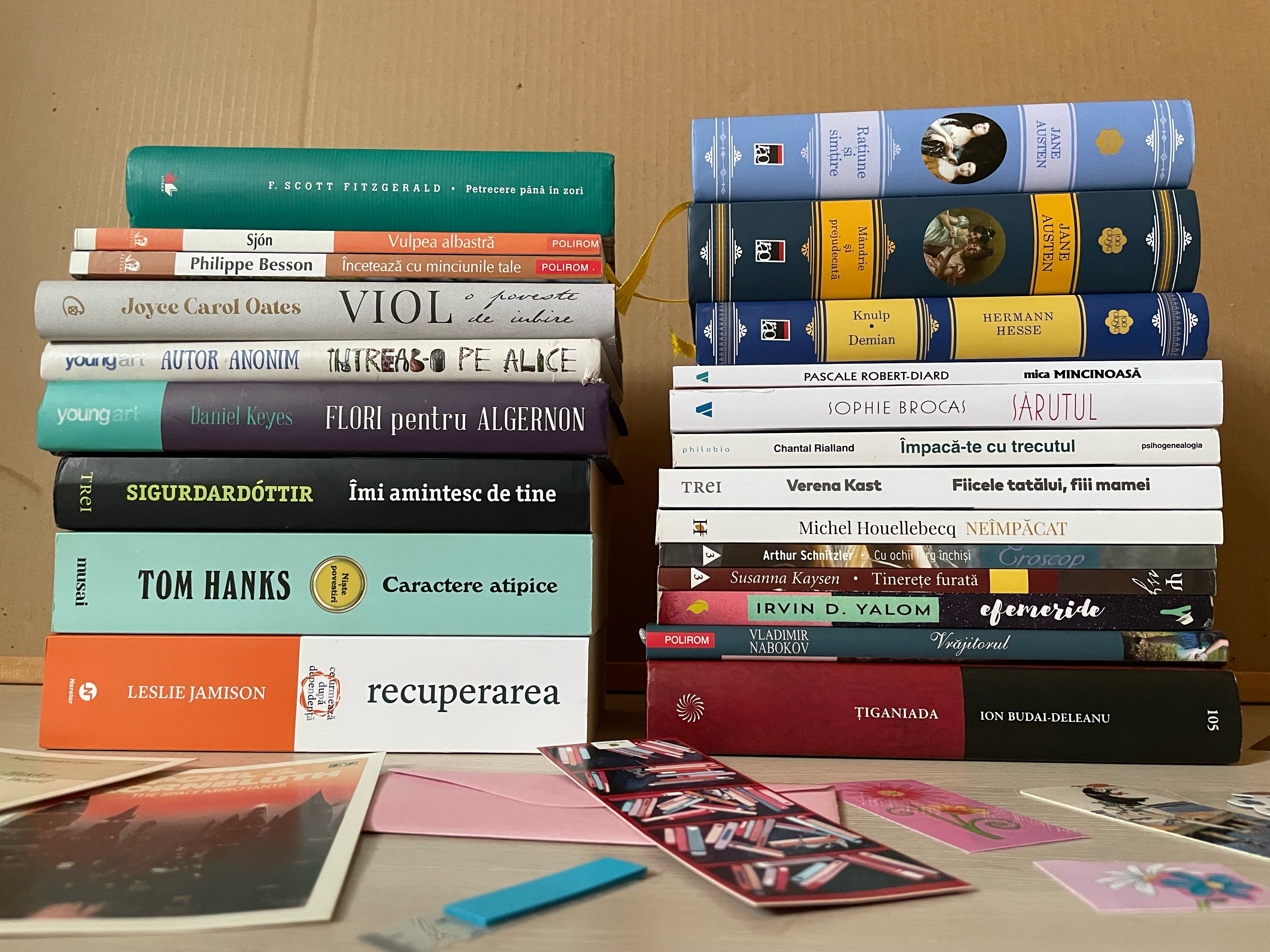 Chiar dacă nu reies la fel de multe vizualizări, prefer întotdeauna să scriu decât să filmez un videoclip. Sper că am reușit să vă inspir cu aceste achiziții literare de care eu sunt foarte încântată și să vă ofer, indirect, recomandări de lectură. Dacă vreunul dintre titlurile menționate vă este familiar, nu ezitați să-mi scrieți un comentariu!