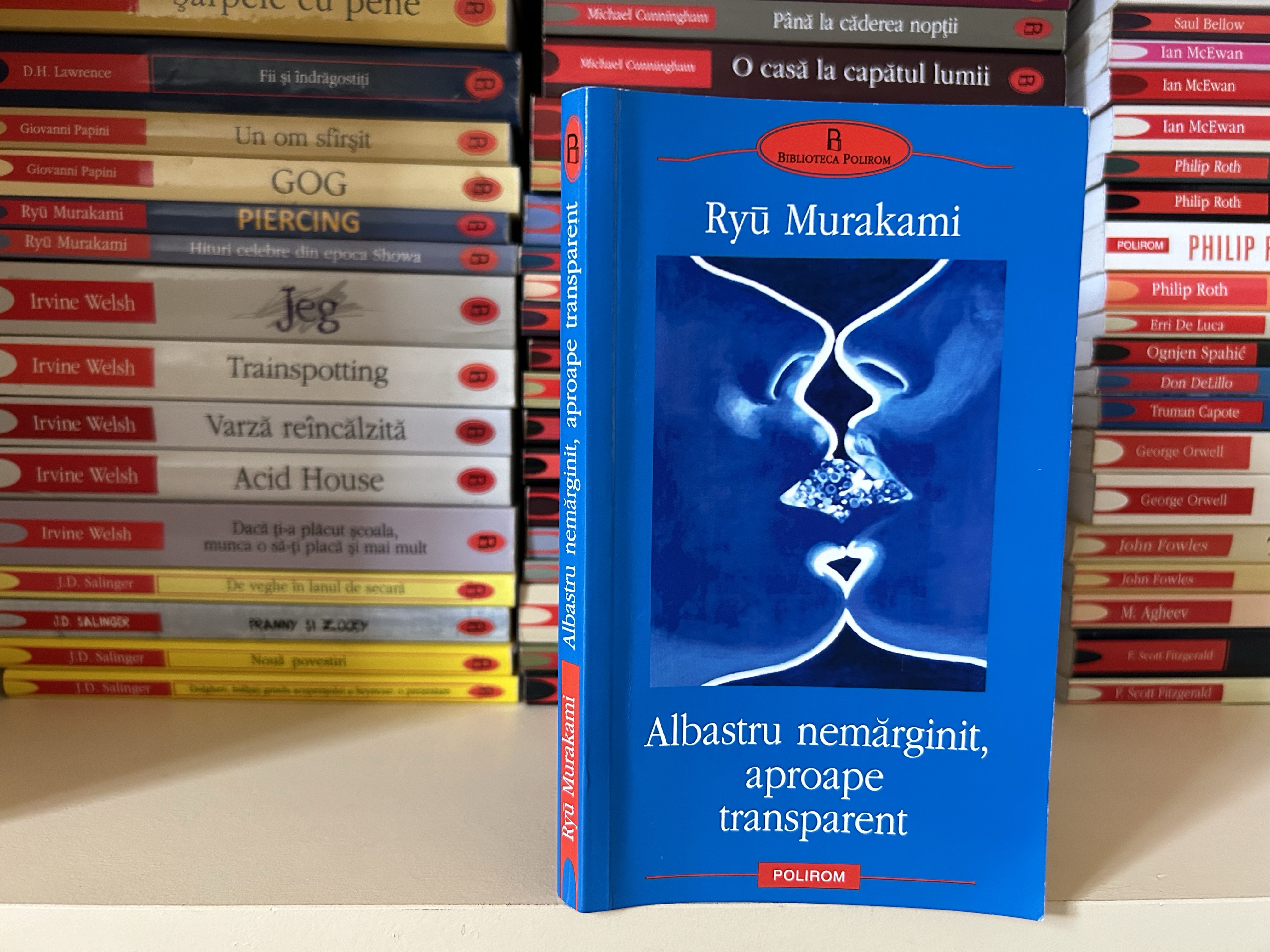 Dacă mai meditez puțin, s-ar putea ca Albastru nemărginit, aproape transparent să-și facă loc printre favoritele mele din toate timpurile. Aștept să mă las însă impresionată și de celelalte cărți ale sale, iar apoi cu siguranță una dintre ele va lua tronul. Dacă nu l-ai citit încă pe Ryu Murakami și nu ți-e frică să-ți dezlipești măcar mental tălpile de pământ, acest volum este un punct excelent de pornire!