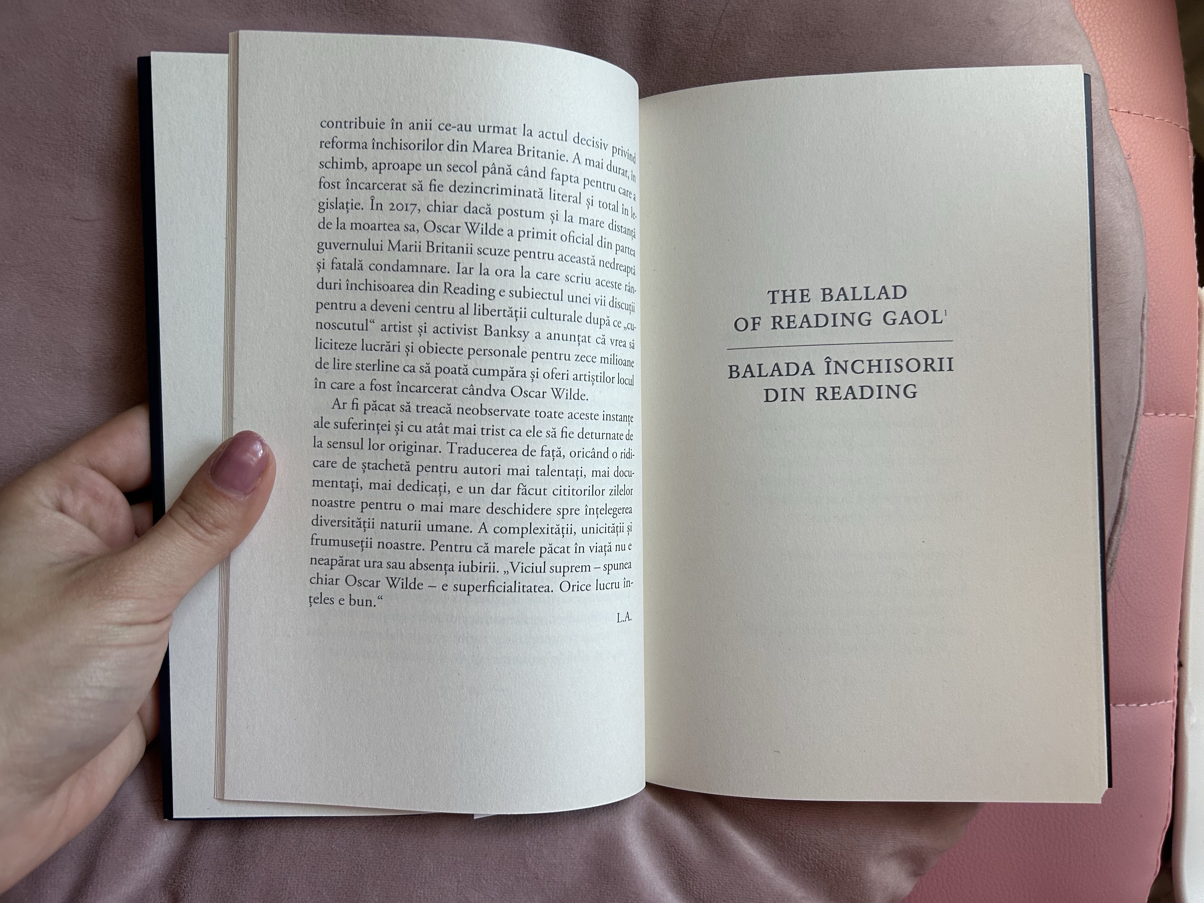 - Sunt o persoană îngăduitoare când vine vorba despre titulatura de „cititor”, dar chiar nu ai cum să treci prin literatura universală și să nu te oprești măcar puțin la Oscar Wilde. Portretul lui Dorian Gray, De Profundis și acest volum de poezie sunt lucrările pe care eu le-am parcurs până acum, una mai sublimă decât cealaltă. Rareori o spun, dar trebuie să-l citești!